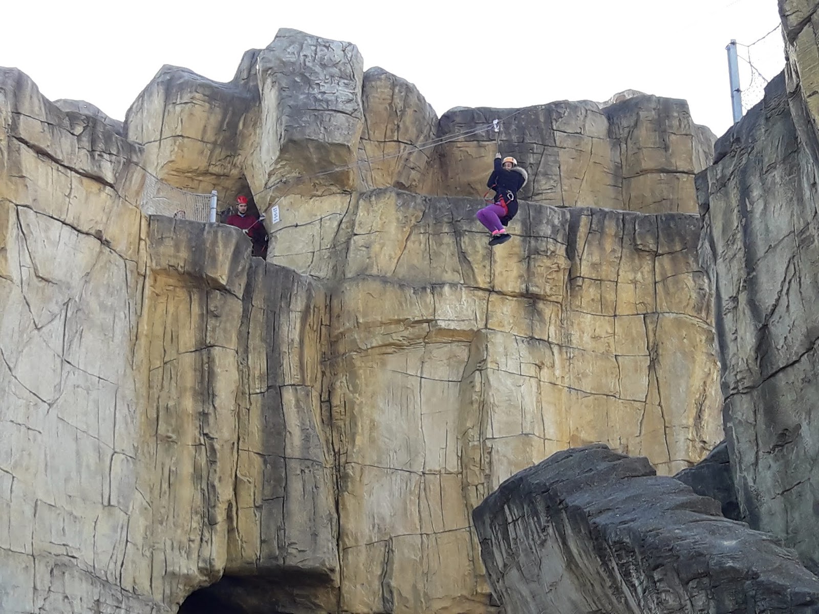 En todo momento, acompañados y dirigidos por monitores, tuvieron la posibilidad de experimentar lo que es deslizarse por una tirolina, pasar por un puente colgante o escudrillar por el interior de una cueva, salvando los espacios mas bajos, yendo a rastras, hasta salir al exterior; también pudieron escalar por un rocódromo.